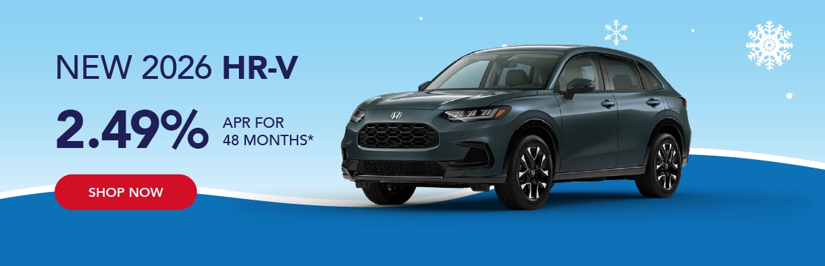 *Based on approved credit through Honda Financial Services. Must finance through Honda Financial Services. Offers are subject to change. Sales tax, licensing fees, registration fees, $565 Administrative fee, property tax are not included in the sale price. See dealer for complete details. Offer is good on new and not previously reported sold 2026 Honda HR-V models. Residency restrictions apply. Customer must be a resident of one of the following states and register the vehicle in one of the following states: AL, AK,AR, District of Columbia, GA, KS, LA, MD, MO, MS, NM, OK, TN, TX, VA, WV. Dealer installed accessories, if applicable, are added to the vehicle price. Offers end 3/2/2026.