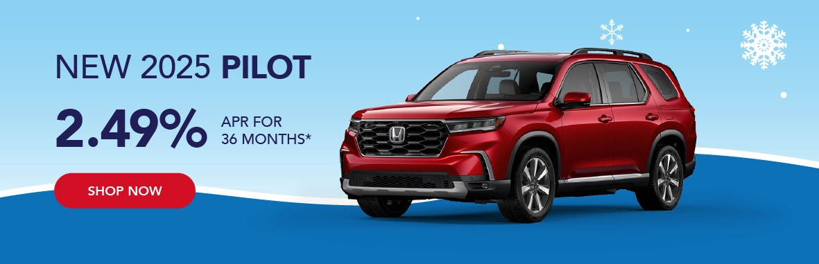 *Based on approved credit through Honda Financial Services. Must finance through Honda Financial Services. Offers are subject to change. Sales tax, licensing fees, registration fees, $565 Administrative fee, property tax are not included in the sale price. See dealer for complete details. Offer is good on new and not previously reported sold 2025 Honda Pilot models. Residency restrictions apply. Customer must be a resident of one of the following states and register the vehicle in one of the following states: AK, AL,AR, District of Columbia, GA, ID, KS, LA, MD, MO, MS, MT, NC, NM, OK, OR, SC, TN, TX, VA, WA, WV, WY. Dealer installed accessories, if applicable, are added to the vehicle price. Offers end 3/2/2026.